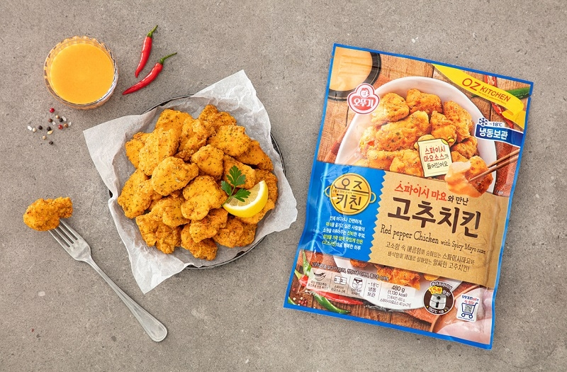 [스마트에프엔=홍선혜 기자] 오뚜기가 국산 청양고추와 홍고추로 만든 매콤바삭한 고추치킨에 마요소스를 더한 ‘오즈키친 스파이시 마요와 만난 고추치킨’을 출시하며, 냉동 가정간편식(HMR) 시장을 적극 공략한다. 이번 라인업 확대를 통해 오뚜기는 냉동 치킨 5종을 구축했다.