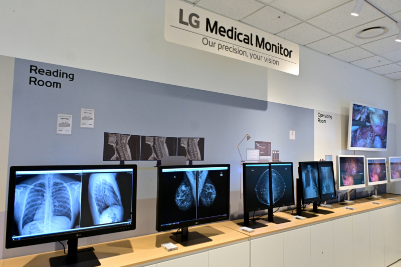 아울러 검출기로 입수한 의료 영상을 판독하는 진단용 모니터도 체험할 수 있다. LG전자 진단용 모니터는 일관된 색상 표현과 높은 밝기로 정확한 판독을 돕는 것은 물론 특정 부위를 부각하거나 현미경으로 보듯 선명한 이미지를 제공하는 등 다양한 영상 모드를 제공한다.