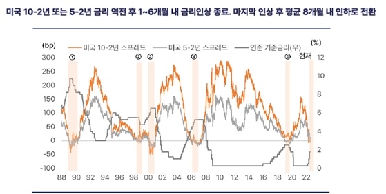 미국 국채 장단기 금리차 역전현상 발생, 6개월 이내 금리인상 종료 알리는 신호