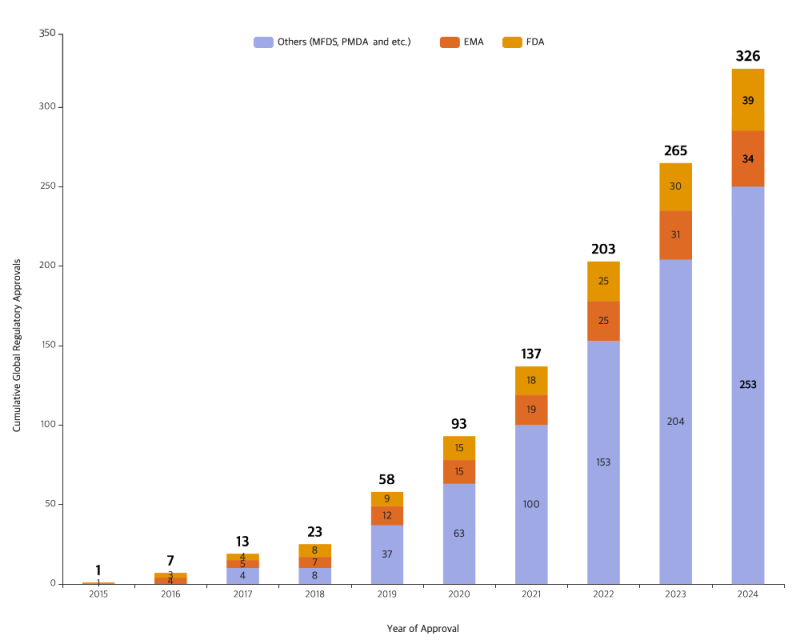 삼성바이오로직스는 지난 9월 기준 미국 식품의약국(FDA) 39건, 유럽 의약품청(EMA) 34건 등 총 326건의 제조 품목 규제기관 제조 승인을 획득했으며, 생산능력 확장 및 수주 증가에 따라 해마다 승인 건수를 늘려가고 있다. 규제기관 실사 통과율은 업계 최고 수준을 유지하고 있다.