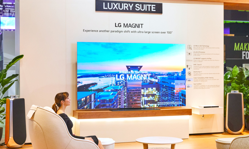 미래 디스플레이로 손꼽히는 마이크로 LED ‘LG 매그니트(MAGNIT)'는 회의실용 올인원 타입, 버추얼 프로덕션(VP) 전용, 프리미엄 홈 시네마용, 설치 및 관리가 편리한 전원공급장치(PSU) 분리형 등 다양한 라인업을 지속 선보이고 있다. 지난 2020년부터 최근 4년간 LG 매그니트의 매출 성장률은 연평균 두 배에 육박하는 초고속 성장세를 기록하고 있다.