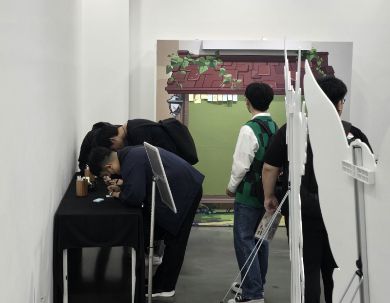 메모리 월 존에서는 준비된 포스트잇에 하고싶은 말이나 그림을 작성해 게시판에 부착이 가능했다.