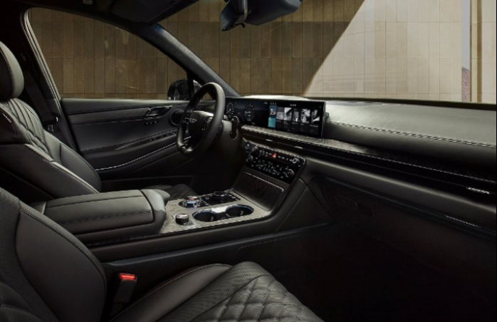실내는 작은 요소들에도 적용된 검은 색상이 전용 내장재와 사양과 어우러져 고급스러운 이미지를 낸다. GV80 블랙 전용 리얼우드 가니쉬, 시트 가죽, 시트 퀼팅·파이핑, 카매트를 적용했다.