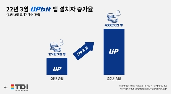 빅데이터 전문기업 TDI(티디아이, 대표 이승주)는 국내 암호화폐 거래소인 업비트의 모바일 앱 이용 현황을 살펴본 결과, 이 같이 조사됐다고 6일 밝혔다.