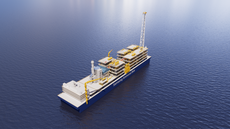부유식 블루 암모니아 생산설비는 모듈화 구조로 해상 부유체에 설치함으로써 탄소 배출의 획기적 감축, 부지 및 인프라 부족 등 제약 조건 극복, 건조 기간 단축으로 경제성 확보가 강점인 차세대 친환경 설비로 평가받고 있다.