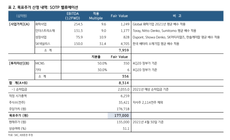 KB증권, SKC 하반기 스익 상승 전망에 목표주가 7.3% 상향 설정