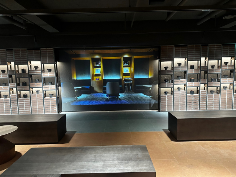 지하 1층은 응접실처럼 꾸며졌는데 이곳은 차고지로 쓰였던 공간이다. 벽면에는 국내 그래픽 아티스트와 협업해 커피 원두의 재배부터 수확, 로스팅을 거쳐 한 잔의 커피가 고객에게 제공되기까지의 여정을 AR로 감상할 수 있는 벽화를 그려 넣었다.