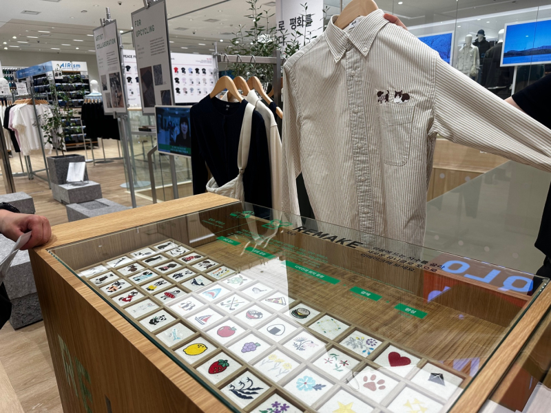 2층으로 올라가면 유니클로 롯데월드점에서만 이용이 가능한 ▲리유니클로 스튜디오가 눈에 들어온다. 국내에서는 처음 론칭 한 것으로 구멍·찢어짐, 솔기, 패치워크 등의 수선 서비스와 함께 70여 가지의 자수 패턴을 통해 기존의 옷을 새롭게 커스터마이징도 할 수 있다.