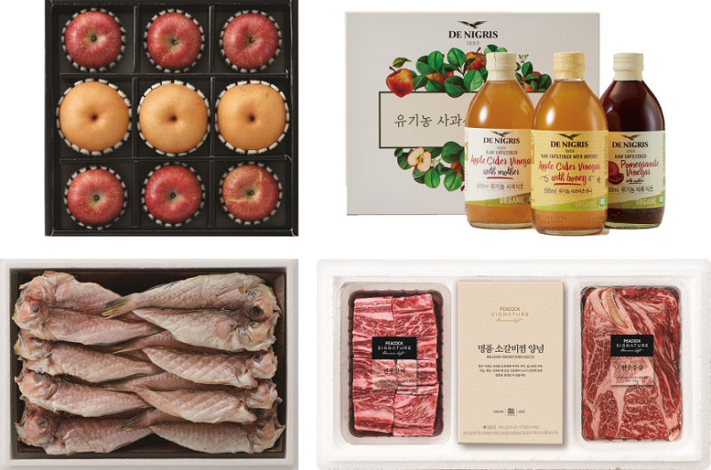 또한 가공식품, 생활용품 선물세트에 대해 1+1 프로모션 혜택을 제공한다. ‘동원 튜나리챔 8호’와 ‘동원참치 M8호’를 각 4만 9900원에, ‘씨제이 스팸 닭가슴살 12호’는 5만 9800원에 판매한다. ‘씨제이 한뿌리 홍삼대보(40mL*24)’는 4만 4800원에, ‘엘지 샴푸&바디세트 프리미엄’은 3만 3900원에 1+1으로 만나볼 수 있다.