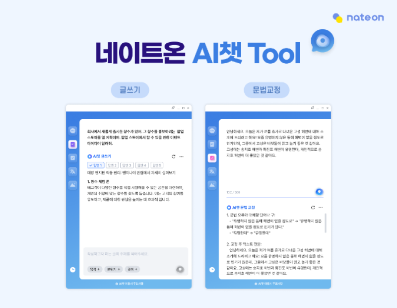 한편, ‘AI챗 Tool’은 네이트온 PC버전의 좌측 메뉴에서 아이콘을 클릭해 간편하게 접근할 수 있다. 네이트온 회원이라면 네이트온 PC버전(Windows 버전 7.0.25.0 이상)에서 누구나 무료로 이용 가능하다.