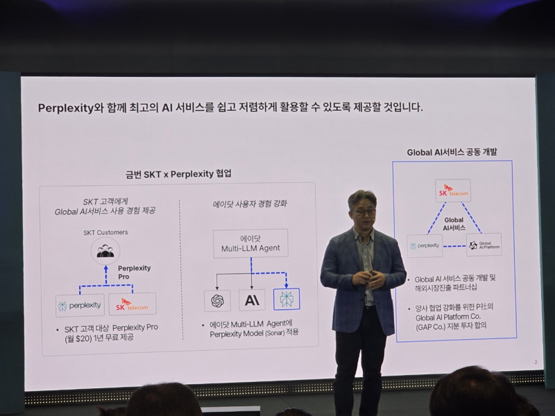 그러면서 "SK텔레콤은 국내 고객에게 다양한 글로벌 AI 서비스를 경험할 수 있는 선택의 폭을 확대시키고 혜택을 제공하는 것에 중점을 두고 있다"며 "이 자리에서 퍼플렉시티와의 협업을 공식적으로 알리고자 자리를 마련했다"고 전했다.