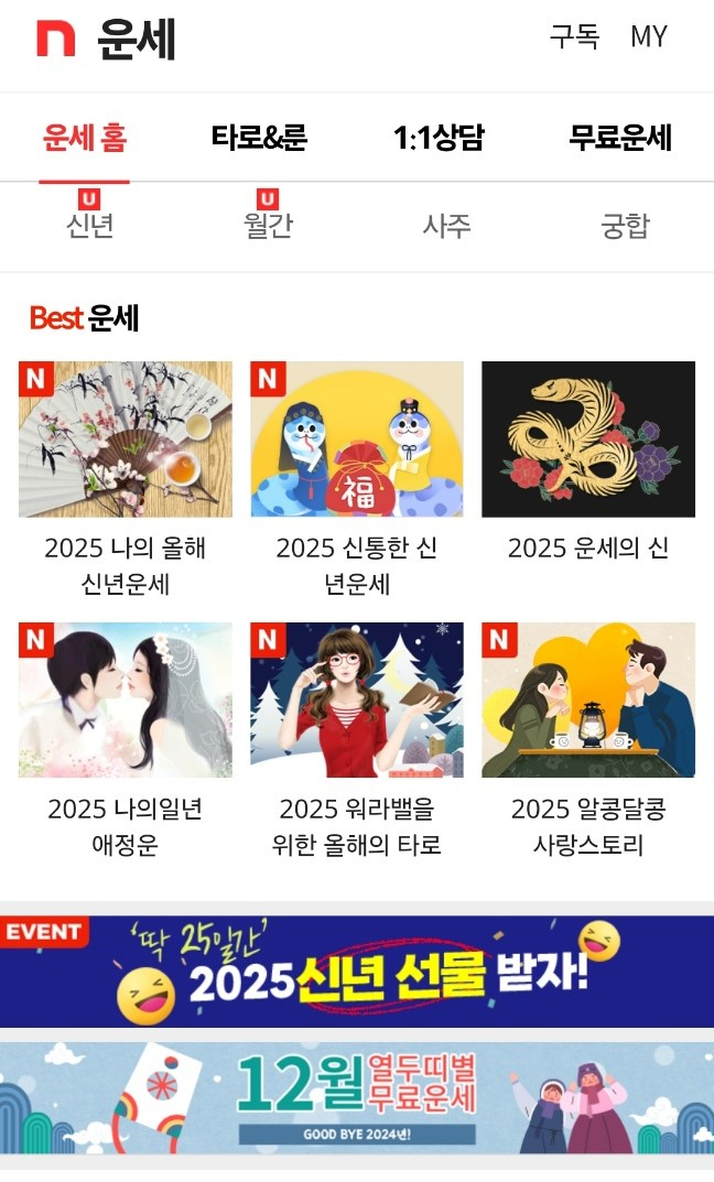 한편, 네이트 운세는 오는 26일까지 신년운세를 이용한 고객 중 100명을 추첨, 2만원 상당의 2025년 별자리 캘린더를 증정하는 이벤트를 진행한다.