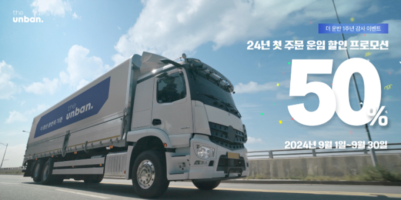 CJ대한통운은 더 운반이 9월 한 달간 첫 이용 화주를 대상으로 운임 50% 할인 이벤트를 진행한다. '더 운반' 플랫폼(어플리케이션)에 가입한 화주라면 별도 신청 없이 첫 주문 및 운송 완료 건에 대해 50% 할인 결제를 받을 수 있다.