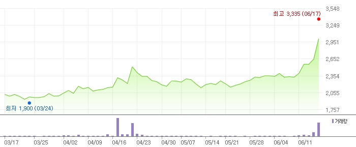 17일 오전 11시20분 기준 한솔PNS 주가는 전날 대비 12.64% 오른 2985원에 거래되고 있다. 장 중 한때 상한가에 가까운 3335원까지 주가가 급등했으나 이내 상승폭을 줄였다.