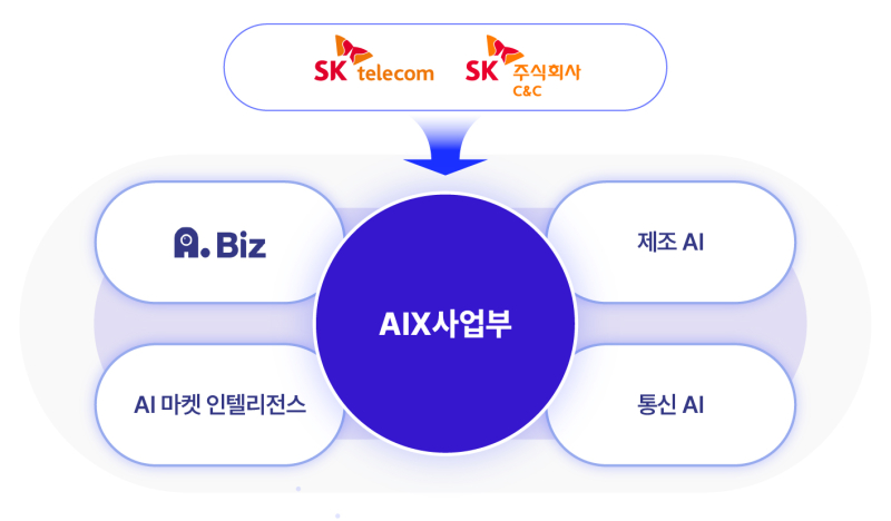 이번 조직 개편으로 정식 출범한 AIX사업부는 그룹의 공통 현안과 그룹사별 사업 특성을 반영한 다양한 AT 사례를 발굴해 ▲에이닷 비즈 ▲AI 마켓 인텔리전스 ▲통신 AI ▲제조 AI의 4가지 서비스를 선보인다.
