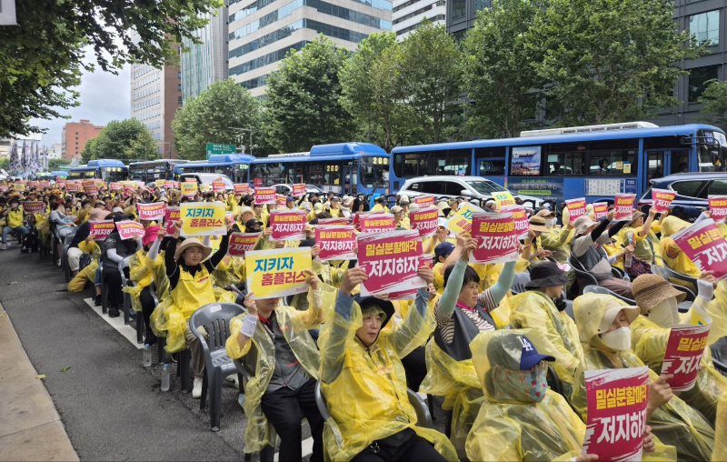 이어 "회사는 연차 신청을 거부하고 무단결근으로 처리하겠다 했음에도 1000명이 오늘 모였다"며 "노동조합 역사상 쟁의권이 없음에도 최대 규모 조합원이 집결했다. 이는 회사의 밀실 분할매각에 대한 조합원의 분노를 고스란히 보여주는 것"이라고 강조했다.