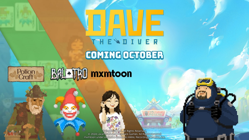 데이브 더 다이버는 신규 컬래버레이션 업데이트를 예고하는 트레일러 영상을 공개했다. 인디 게임인 ‘포션 크래프트’, ‘발라트로’의 지적재산권(IP)을 활용한 콘텐츠뿐만 아니라 북미 싱어송라이터이자 크리에이터인 ‘Mxmtoon’가 게임 내 NPC로 등장하는 업데이트를 오는 10월 선보일 예정이다.