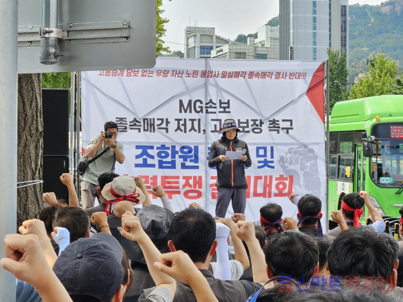 또한 노조는 "메리츠화재가 고용 및 근로조건 승계 의무가 없는 P&A(보험계약을 포함한 자산·부채 이전) 방식으로 MG손보를 인수, 600여 노동자들의 일자리를 위협할 것"이라고 주장했다.