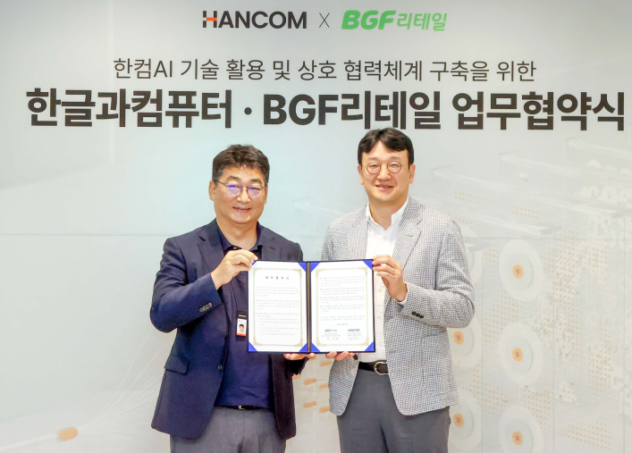 특히, AI 지능형 문서 작성 도구인 ‘한컴어시스턴트’와 AI 기반 질의응답 설루션 ‘한컴피디아’ 등 한컴의 AI 제품을 활용해 BGF리테일의 DX를 전개하며, 기능과 성능을 공동으로 검증 및 고도화하기로 했다.