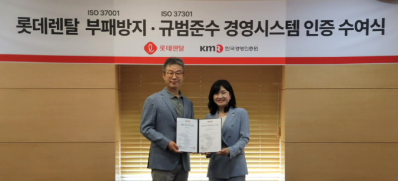 롯데렌탈은 지난해 8월 부패방지경영시스템 인증을 획득한 데 이어 지난달 규범준수경영시스템 인증에도 성공해 업계 최초로 통합인증을 달성했다. 기업의 사회적 책임과 윤리적 경영을 강화하기 위해 전사적 차원의 준법경영 시스템을 구축해온 점을 높이 평가받았다고 설명했다.