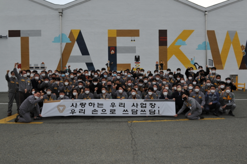 첫 번째 대상으로는 너비 약 70미터 규모의 섬유공장 아크릴 제품창고 외벽이 선정됐다. 이날 완성된 벽화는 ‘태광(TAEKWANG)’ 로고와 함께 아크릴, 폴리에스터, 나일론, LMF, 아라미드, 모다크릴 등 섬유공장에서 생산하고 있는 총 6개의 원료가 상품화되었을 때의 모습을 일러스트로 구현했다.