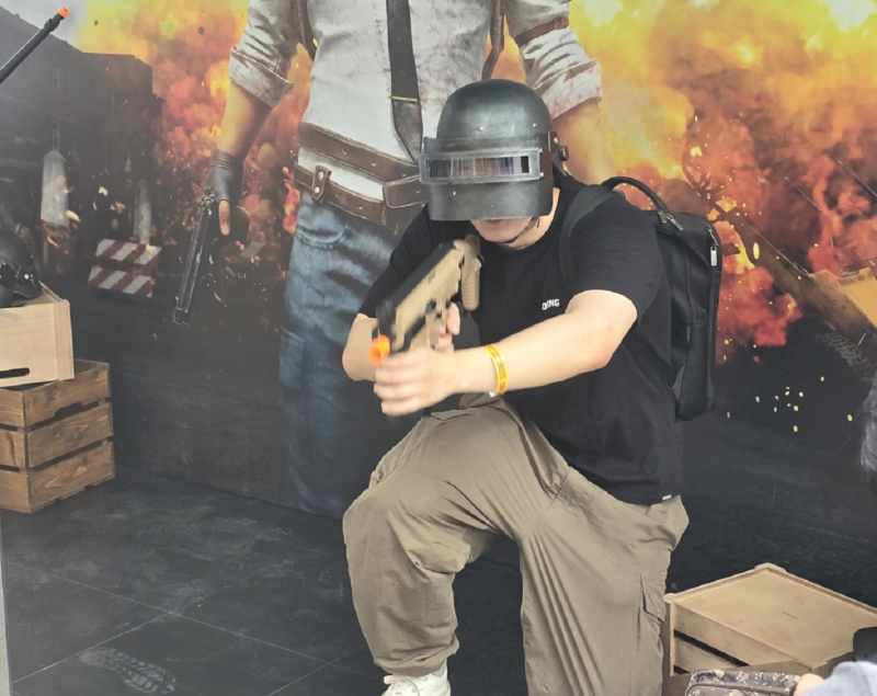 첫 번째로 만난 공간은 포토존이다. 이곳에선 배틀그라운드 게임 내 헬멧과 총을 착용한 후 촬영을 할 수 있었다.