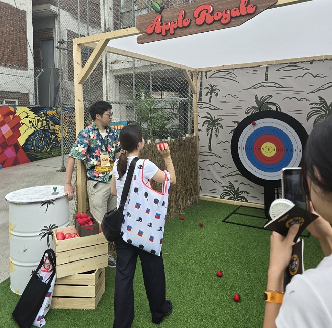 다음으로, '애플 로얄'이라는 공간도 있었는데, 게임 내 사녹맵 로딩창에서 만나볼 수 있는 사과 아이템으로 과녁을 맞추는 게임을 만나볼 수 있었다.