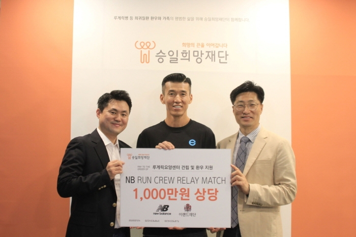 이번 전달식은 지난달 진행된 ‘뉴발란스 런 크루 릴레이 매치’의 참가비를 전액 루게릭 환우 가정에 기부하는 행사로 뉴발란스 조동주 BU장, 이랜드재단 김욱 국장, 승일희망재단 션 대표가 참석했다.