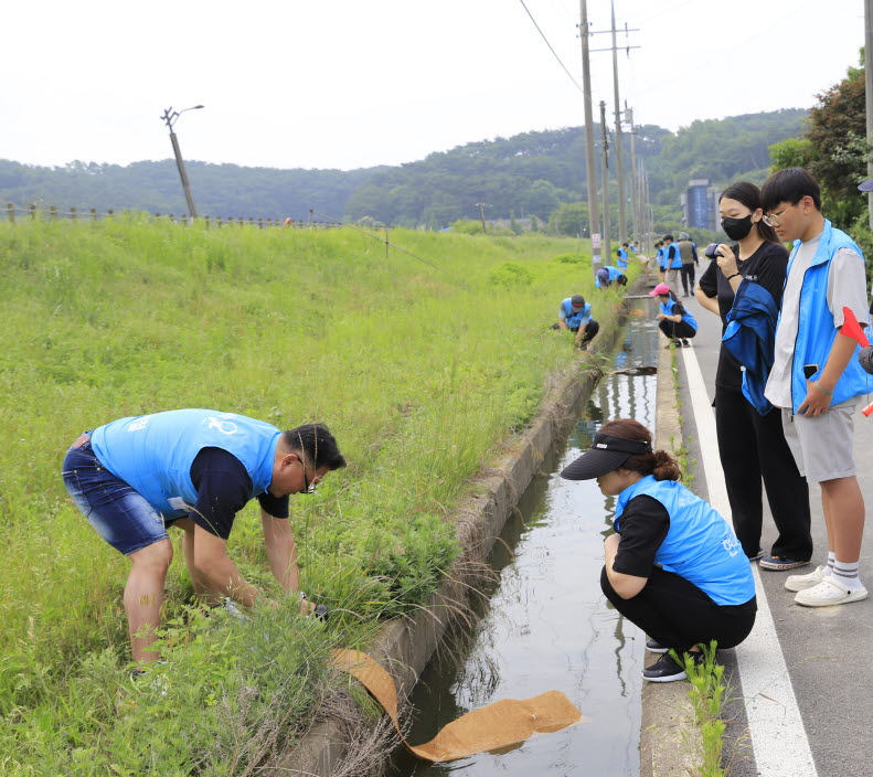 이에 현대제철은 지난달 15일 한국생태관광협회, 시민환경연구소, 엔에스생태연구소 등과 함께 임직원 및 가족 100명으로 구성된 '현대제철 가족봉사단'을 통해 금개구리 생태사다리를 설치하고 서식지 인근지역 정화활동(플로깅)을 진행했다. 이번에 설치한 생태사다리는 금개구리의 이동과 번식을 위한 생태통로의 역할을 할 것으로 기대되고 있다.