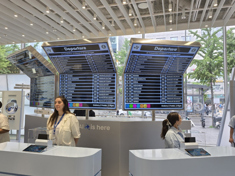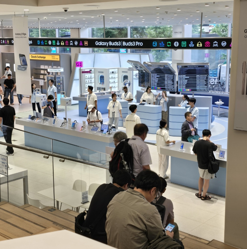 이밖에도, 삼성 갤럭시 스토어 홍대점에서는 ▲탑승 수속 QR 스캔 ▲승객 탑승용 다리(Boarding Bridge) ▲퍼스트 클래스 등을 체험할 수 있는 공항이 마련돼 있었다.