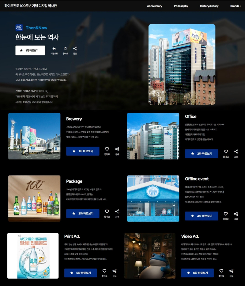 하이트진로 김인규 대표는 “하이트진로의 100주년 역사는 곧 대한민국 주류산업의 역사로 ‘디지털 역사관’을 통해 중장년세대는 추억을 회상하고 MZ세대는 현재를 공유하며 시대를 뛰어넘는 공감의 장이 될 것” 이라고 언급했다.