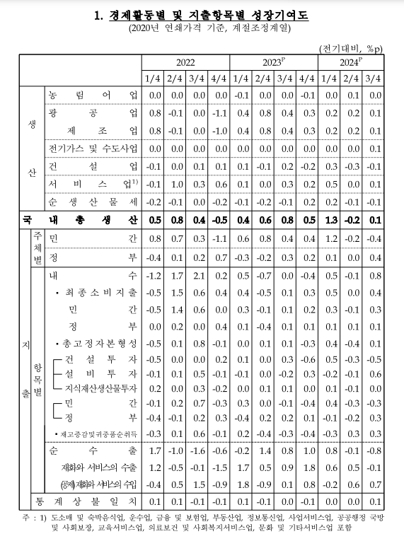 순수출 기여도 -0.8%p로 성장 제한...내수는 0.8%p 기여