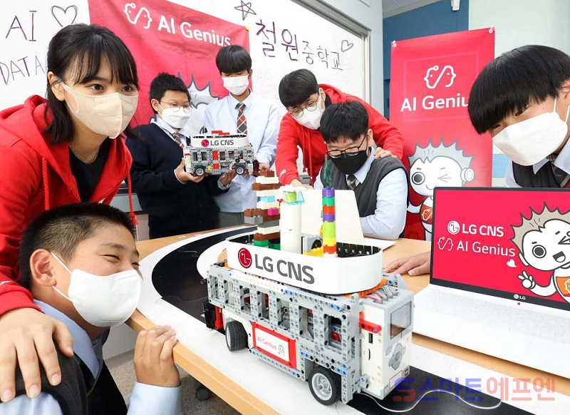‘AI지니어스’는 IT 꿈나무 육성을 위해 무상으로 AI 교육을 제공하는 LG CNS의 DX 사회공헌 프로그램이다. 중학교 정규 수업시간에 편성돼 하루 6교시 동안 실시된다. 수업은 △AI 챗봇 만들기 △AI 자율주행차 만들기 △마이데이터 서비스 기획 등으로 구성돼 있다.