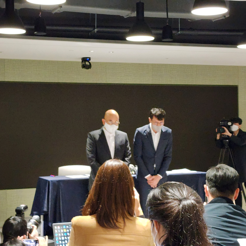 이날 기자회견에는 남궁훈·홍은택 각자대표가 참석해 SK(주) C&C 데이터센터 화재로 인해 장애를 일으켰던 카카오 주요 서비스와 관련해 사과를 올렸다. 남궁훈·홍은택 대표이사는 "지난 15일 발생한 판교 데이터센터 화재로 인한 서비스 장애로 불편을 겪으신 모든 이용자분들께 먼저, 고개를 숙여 진심으로 사과드린다"고 밝혔다.