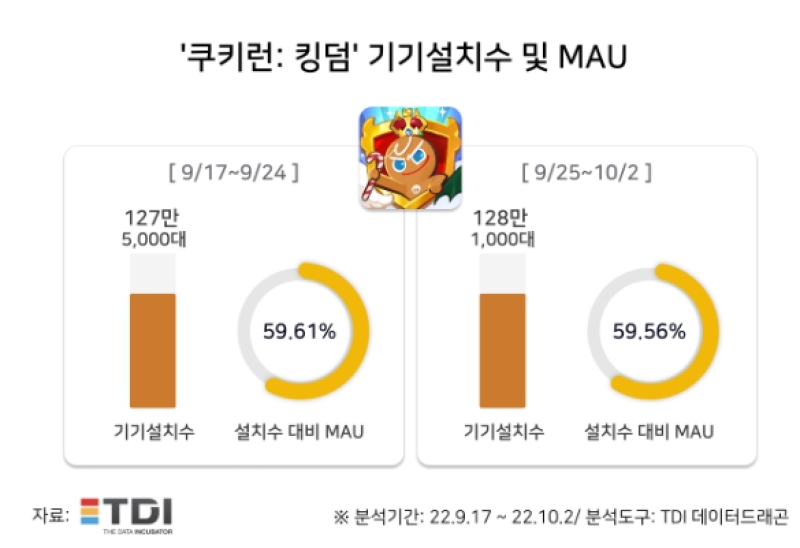 이벤트 사전 등록 전주(9월 17일~24일)까지 기기 설치 수는 127만 5,000대로 집계됐다. 이벤트 사전 등록 진행 이후 (9월 25일~10월 2일) 기기 설치 수는 128만 1,000대로 전주 대비 6,000대 증가했다.