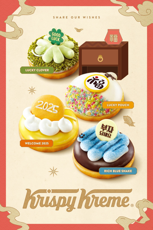 롯데GRS가 운영하는 크리스피크림도넛은 2025년 푸른 뱀의 해를 맞아 소망하는 소원을 함께 나눈다는 ‘SHARE OUR WISHES’ 컨셉으로 신제품 ‘New Year Wish(뉴이어 위시)’ 도넛 4종을 출시했다.