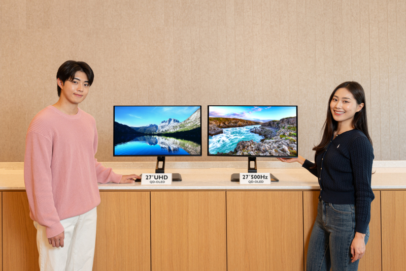함께 선보이는 27형 QHD(2560x1440) 제품은 주사율이 500헤르츠(Hz)로, 현존하는 자발광 모니터 중 최고 주사율을 자랑한다. 액정표시장치(LCD) 모니터와 비교해도 뒤지지 않는다.