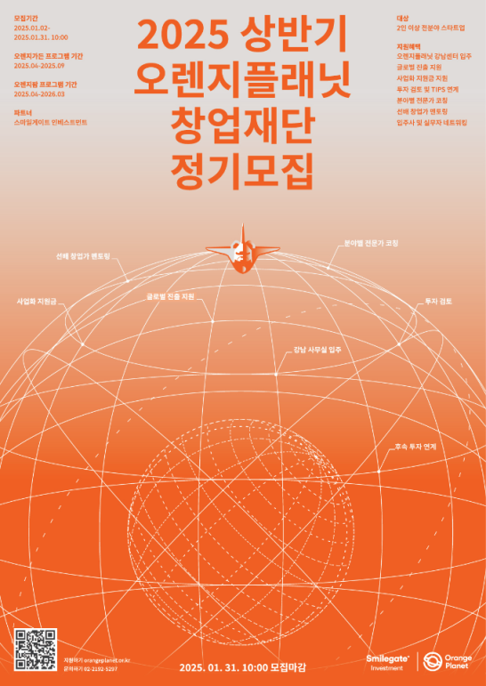 상반기 정기모집 대상은 2인 이상 팀으로 구성된 5년 이내의 스타트업이다. 지원하고 싶은 스타트업은 오렌지플래닛 홈페이지에 지원 양식을 제출하면 된다. 마감은 이달 31일이다.