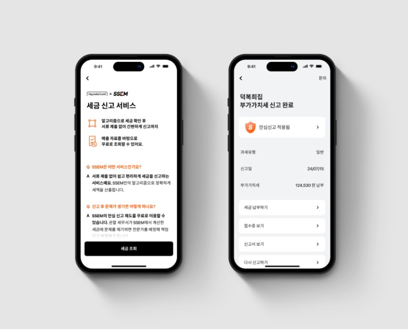 이용 방법은 현대카드 앱 내 '사장님 홈'에서 세금 신고 서비스 메뉴를 선택하고 본인 인증만 하면 된다. 개인사업자 전용 상품인 MY BUSINESS 카드를 이용하는 회원이라면 누구나 이용할 수 있다. 이번 세금 신고 서비스는 SSEM(쎔)과 협업해 제공한다.
